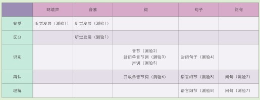 表1.《言语听觉反应评估》的测试结构